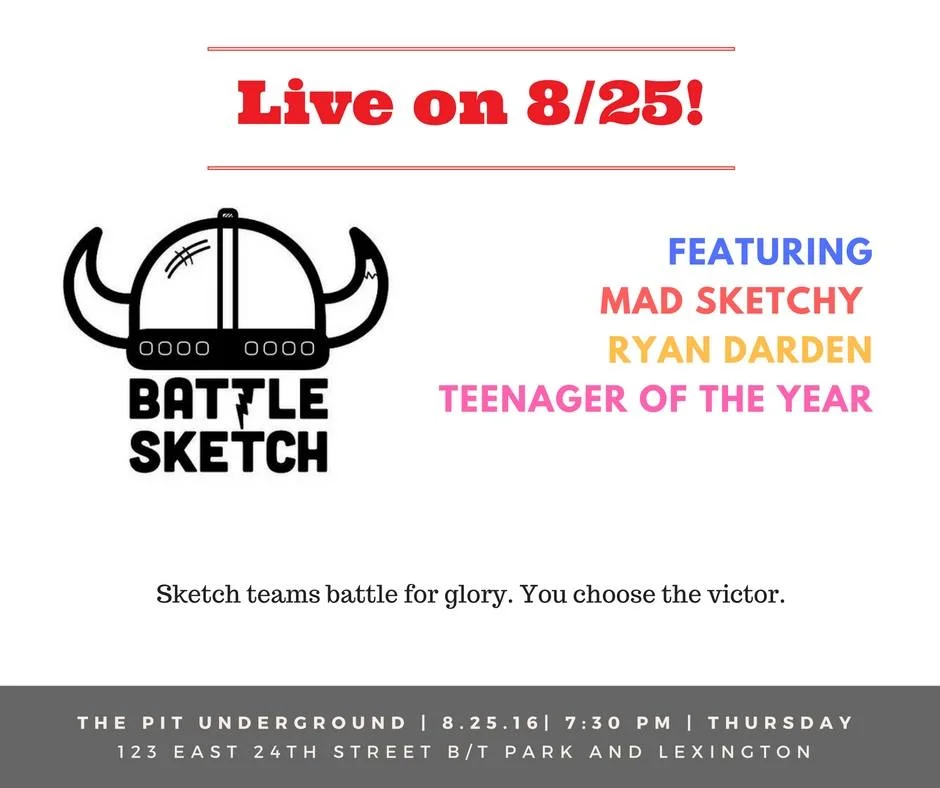 Once again this month I'll be battling it out for sketch comedy supremacy at Battle Sketch. Looking forward to performing a brand new sketch in this super fun show.